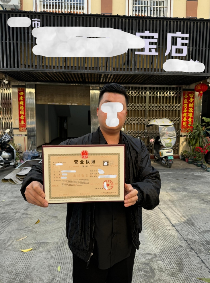 手持营业执照:正脸漏出双肩,可看的清楚执照上面文字内容